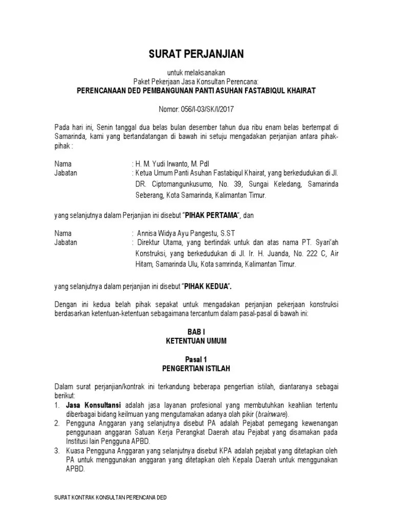 Surat perjanjian konsultan pengawas surat perjanjian untuk melaksanakanpaket pekerjaan jasa konsultan pengawas: Pihak pertama untuk melaksanakan pengendalian pekerjaan yang terdiri atas pengawasan dan tindakan koreksi,akan menunjuk. Pada saat pcm, ppk mempersilahkan kontraktor pelaksana dan konsultan pengawas konstruksi untuk memulai pelaksanaan pekerjaan dengan membuat . Memiliki surat register dari menteri melalui proses penyetaraan. Jenis kontrak konsultan pengawas pekerjaan.