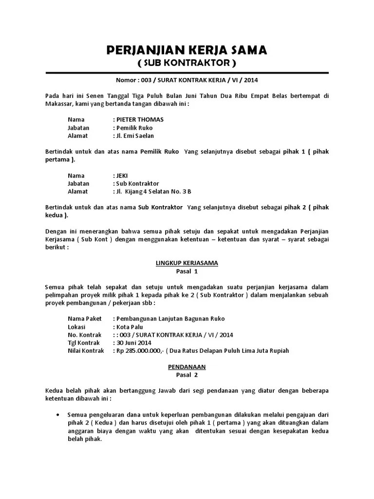 Contoh perjanjian kerja sama sub kontrak 2full description. The modifmobilz.com team also supplies the picture in top quality resolution (hd resolution) that may be downloaded simply by way. Surat perjanjian perlantikan sebagai sub kontraktor. Surat perjanjian pelaksanaan pekerjaan pembangunan rumah tinggal. Cara membuat dan contoh surat kontrak perjanjian kerja.